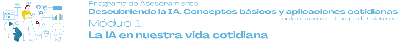 Inicio 5 Programa de Asesoramiento 1 5 Módulo 1: La IA en nuestra vida cotidiana Volver atrás Módulo 1 Recursos del Módulo Contenido teórico Acceder Podcast Acceder Ejercicio práctico Acceder Lecturas complementarias P7 ejemplos de uso de inteligencia artificial en nuestro día a día PPrincipales usos de la IA en nuestra vida diaria PManeras en que la IA Puede Mejorar y Facilitar Tu Vida PEnlace a la web de Google Vídeos complementarios PLa historia completa de la Inteligencia Artificial P¿Qué es la inteligencia artificial? P¿Qué es y cómo funciona la INTELIGENCIA ARTIFICIAL? PCurso gratuito: Inteligencia Artificial para todos