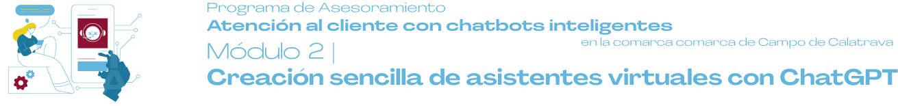 Inicio 5 Programa de Asesoramiento 8 5 Módulo 2: Creación sencilla de asistentes virtuales con ChatGPT Volver atrás Módulo 2 Recursos del Módulo Contenido teórico Acceder Podcast Acceder Ejercicio práctico Acceder Lecturas complementarias PEl futuro de los chatbots en la atención al cliente: ¿Están reemplazando a los humanos? P¿Cómo crear un chatbot con IA e integrarlo en WhatsApp? PLa guía definitiva de los chatbots PNL en 2025 Vídeos complementarios P¡Las Nuevas Funciones de ChatGPT Son una LOCURA! PConversaciones con Inteligencia Artificial – ChatBots PCómo CREAR TU PROPIO Chatbot con ChatGPT desde cero